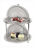 | ✚✚✚ APS Paderno World Cuisine 19 5/8" Two-Tier Cooling Buffet Display The APS Paderno World Cuisine 19 5/8" high two-story cooling buffet display is a beautiful display and is sure to impress your guests. Both levels have stainless steel bases with rolling acrylic lids with stainless knobs. Each level has a diameter of 17 1/8". It is sturdy and has three posts to ensure stability. It is great way to display all of your cool items such as desserts requiring chilling, sushi, appetizers and much more.