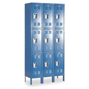 Hallowell U3288-3A-MB Marine Blue Steel Premium Wardrobe Locker, 3 Wide with 9 Opening, 3 Tier, 36" Width x 78" Height x 18" Depth, Assembled