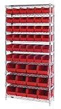 Quantum Storage Systems WR10-230240BL 10-Tier Complete Wire Shelving System with 36 QUS230 and 12 QUS240 Blue Giant Open Hopper Bins, Chrome Finish, 14" Width x 36" Length x 74" Height