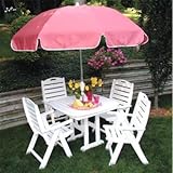 POLYWOOD Recycled Plastic Nautical Breeze Patio Set - Seats 4The Nautical Breeze Patio Set is a great addition to any deck patio or porch. Enjoy your morning coffee and paper under the shade of an added umbrella by using the 1 5/8-inch umbrella hole or dine with your family under the comfortable warmth of the early evening sun. Made of 100 percent recycled plastic this square table and matching chairs have the appearance and texture of real wood. Four people can comfortably gather around its slat-style tabletop for a relaxing meal outdoors. Enjoy this maintenance-free patio dining set for years to come. The dining chairs fold for easy storage when not in use. Some assembly required. About PolyWoodThe advantages of PolyWood Recycled Plastic are hard to ignore. PolyWood absorbs no moisture and will NOT rot warp crack splinter or support bacterial growth. PolyWood is also compounded with permanent UV-stabilized colors which eliminates the need for painting staining waterproofing stripping and resurfacing. This material is impervious to many substances including salt water gasoline paint stains and mineral spirits. In addition every PolyWood product comes with stainless steel hardware.PolyWood is extremely easy to clean and maintain. Simple soap and water is all you need to get rid of dirt and make your furniture look new again. For extreme cleaning needs you can use a 1/3 bleach and water solution. Most PolyWood furnishings are available in a variety of classic colors which allow you to choose your favorite or coordinate with the furniture you already have. This is sure to be a piece that you will be proud to own for a lifetime.