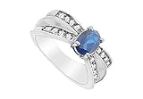 | ✚✚✚ Diffuse Sapphire and Cubic Zirconia Ring : 10K White Gold - 2.00 CT TGW Size 9.5 An oval diffuse sapphire is center-set and is flanked by smaller white CZs in two rows on both sides in the sleek prong-setting . Made in 10K white gold this ring has a total gem weight (TGW) of 2.00 carat.