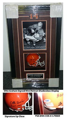 Hall of Fame National Football League QuarterbackOtto GrahamHand Signed Cleveland Browns Mini-HelmetProfessionally Framed with an 8x10" Black and White Photographin a 17x30" (appx) Black Shadowbox Frame Graham Played For:Cleveland Browns 1946-1955and was inducted into the Hall of Fame in 1965 .GREAT AUTHENTIC OTTO GRAHAM FOOTBALL COLLECTIBLE!!AUTOGRAPH AUTHENTICATED BY PSA DNA AUTHENTICATIONS WITH NUMBERED PSA DNA STICKER ON ITEM AND MATCHING NUMBERED PSA DNA CERTIFICATE OF AUTHENTICITY (COA) INCLUDED WITH ITEM. PSA DNA COA #: L 79069FeaturesMany instructions • If you are interested in buying HOF Otto Graham Signed Mini Helmet Photo 17x30 Shadowbox Display PSA COA Browns You can try to find full information and product details. • Reading reviews will give you a complete understanding of the pros and cons for the product. • If you try to find comparable items, and sometimes it helps to get the selection. • You can try to find arguments. • See the details for each product offerings and information. • You can try to find product features. • In general, I know the Internet in HOF Otto Graham Signed Mini Helmet Photo 17x30 Shadowbox Display PSA COA Browns, or other material purchased the customer shops and stores, shipping, gift ideas, city deals, sales, coupons, online, new, holiday and reviews, cheap and low-cost interest daily deals, deal, HOF Otto Graham Signed Mini Helmet Photo 17x30 Shadowbox Display PSA COA Browns special offers, Best deals, discount coupons, and more hot deals, great offers, last minute deals and the best buy various products including ...Additional Information |